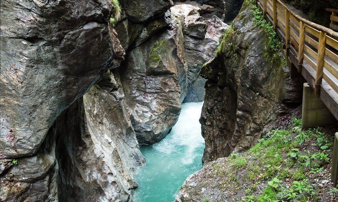 it is one of the longest and deepest gorges in the alps. the mighty rustling of the waterfall, the moss-covered stones in lush green, a legendary atmosphere and sunbeams that create a rainbow in the fine water dust. a great hike over bridges and footbridges – also suitable for a family hike (not suitable for prams)!